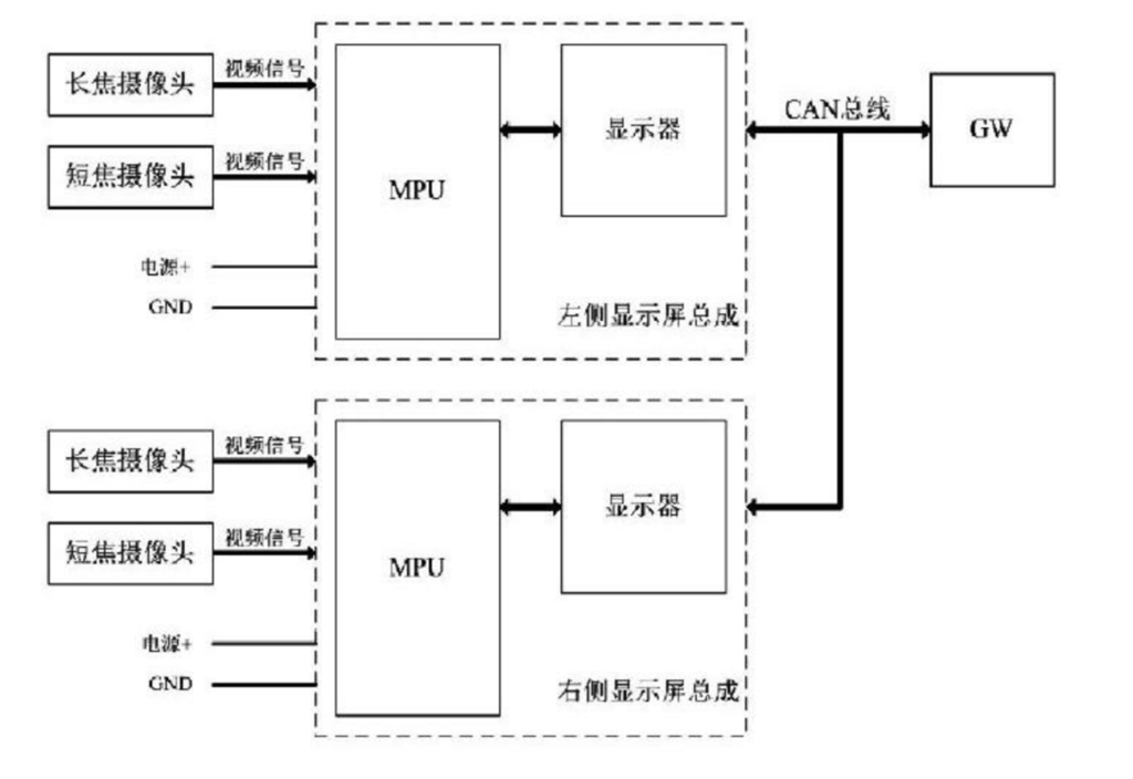 為滿(mǎn)足GB 15084中的視野要求,電子后視鏡可采用長(zhǎng)焦攝像頭和短焦攝像頭相結(jié)合的方案,車(chē)輛近端和遠(yuǎn)端的環(huán)境畫(huà)面均能清晰的呈現(xiàn)在顯示屏上。