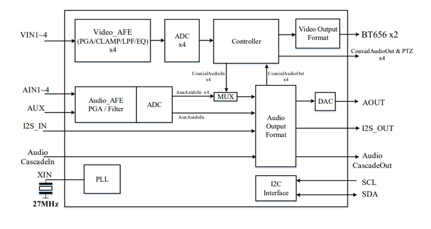 - 支持 4 路差分視頻輸入;輸入差分幅度為 1Vpp 視頻源;
