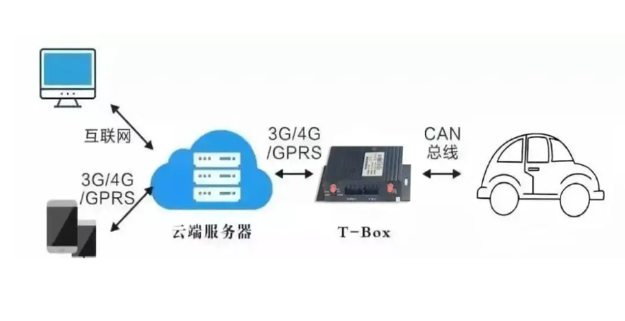 Telematics BOX,簡(jiǎn)稱車載T-BOX,車聯(lián)網(wǎng)系統(tǒng)包含四部分,主機(jī)、車載T-BOX、手機(jī)APP及后臺(tái)系統(tǒng)。主機(jī)主要用于車內(nèi)的影音娛樂,以及車輛信息顯示;車載T-BOX主要用于和后臺(tái)系統(tǒng)/手機(jī)APP通信,實(shí)現(xiàn)手機(jī)APP的車輛信息顯示與控制。