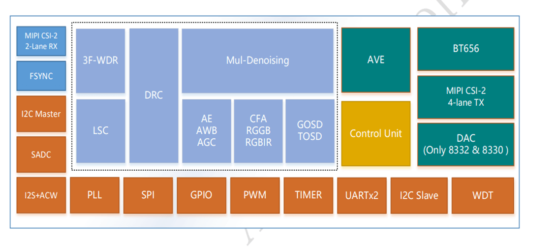 FH8333 是一款高性能低功耗 3M 車載前裝圖像處理芯片,支持 RGGB/RGB-IR Bayer 格式輸入;支持 3 幀合成 HDR,最大動(dòng)態(tài)范圍可達(dá) 120dB;內(nèi)置多級(jí)去噪處理模塊,具有優(yōu)秀的噪聲控制能力;視頻處理能力可達(dá) 1920×1536@30fps;支持 HDAnalog、MIPI 和 BT656 輸出。適合倒車、環(huán)視、駕駛員監(jiān)測(cè)、座艙監(jiān)測(cè)和流媒體攝像頭等車載攝像頭應(yīng)用。