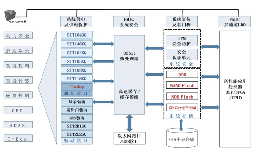 汽車網(wǎng)關(guān)作為整車通信的核心中樞,負(fù)責(zé)連接和協(xié)調(diào)來自動(dòng)力、底盤、安全、車身控制、信息娛樂、遠(yuǎn)程信息處理以及高級(jí)駕駛輔助系統(tǒng)(ADAS)等不同功能域的數(shù)據(jù)交換。它需同時(shí)處理多種通信協(xié)議(如 CAN、LIN、FlexRay、千兆以太網(wǎng))并執(zhí)行實(shí)時(shí)數(shù)據(jù)過濾以確保系統(tǒng)安全,防止網(wǎng)絡(luò)攻擊。