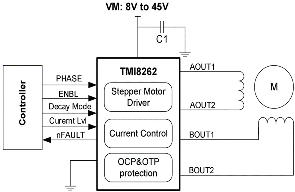 TMI8262 低噪音高驅(qū)動(dòng)能力馬達(dá)驅(qū)動(dòng)驅(qū)動(dòng)一個(gè)步進(jìn)馬達(dá),或兩個(gè)直流有刷馬達(dá)