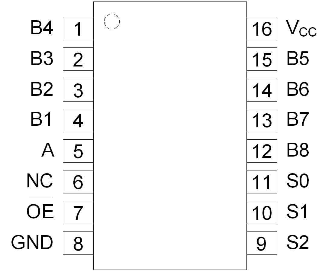 | AiP74CBTLV3251 | 1路8選1 (帶使能) | 2.3V~3.6V | -40℃~125℃ | SOP16 SSOP16 TSSOP16 VQFN16 |