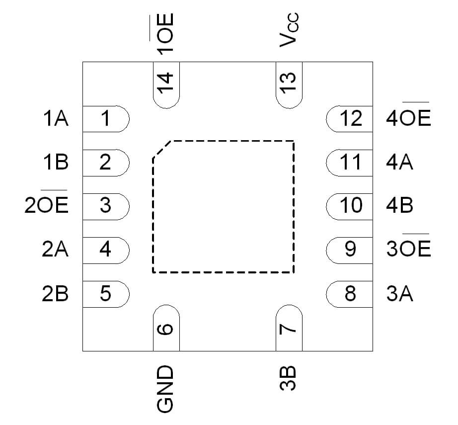 | AiP74CBTLV3126 | 4路1通道 (帶使能) | 2.3V~3.6V | -40℃~125℃ | SOP14 TSSOP14 SSOP16 |