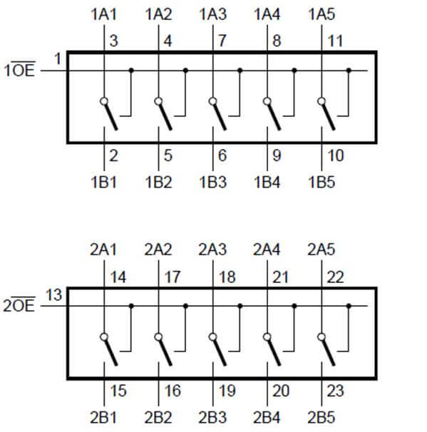 - 核心特性:每5路帶輸出使能 + 電荷泵