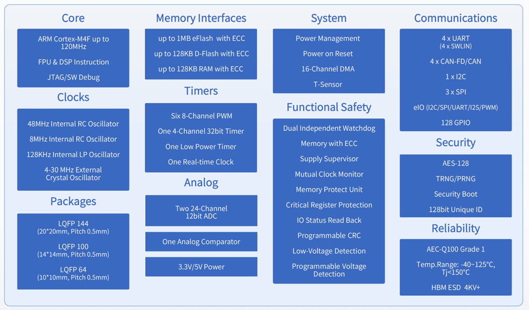 杰發(fā)科技AC784X基于ARM Cortex-M4F內(nèi)核,主頻高達120MHz,集成DSP指令集與浮點單元(FPU),為實時圖像處理提供算力基礎(chǔ)。其車規(guī)級設(shè)計完美契合電子后視鏡需求: