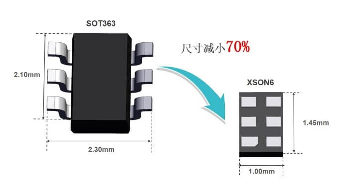 為滿(mǎn)足可穿戴設(shè)備、工業(yè)控制、網(wǎng)絡(luò)通信等各種應(yīng)用中邏輯器件小型化需求,I-CORE推出超小極薄無(wú)引腳封裝。 在產(chǎn)品中采用更小的封裝可以有效節(jié)省PCB空間,降低制造商成本。 與業(yè)界普遍使用的有引腳封裝如SOT相比,超小極薄無(wú)引腳封裝可節(jié)約高達(dá)87%、70%的PCB空間。