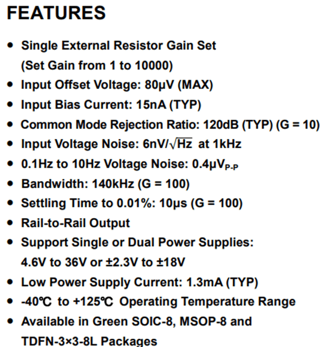 采用儀表放大器相較于通用運放或集成電阻的差分放大器的優(yōu)勢包括: