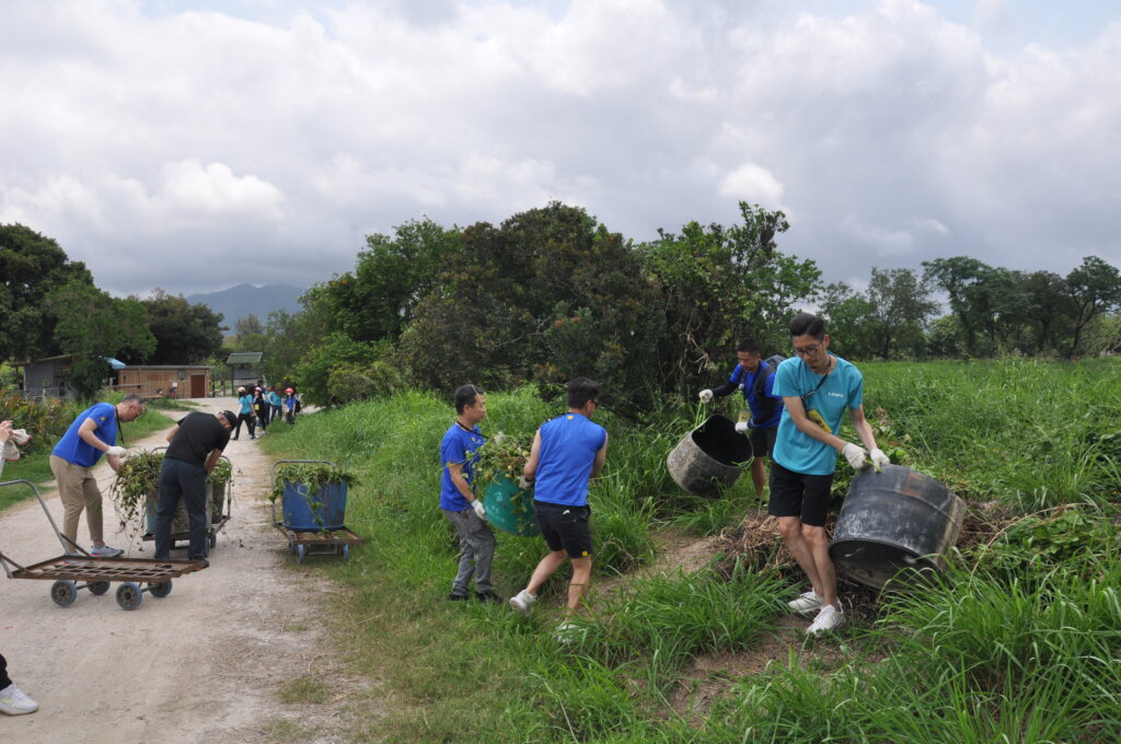 活動當天,WWF-HK 職員向各義工們介紹保護區(qū)內(nèi)的濕地系統(tǒng),米埔內(nèi)后海灣拉姆薩濕地是個淺水海灣,臨水地帶為廣闊的潮間帶泥灘,灘后遍布紅樹林、潮間帶蝦塘(基圍)、漁塘和蘆葦林,是遷飛候鳥從北極圈俄羅斯遷飛至澳洲期間的重要度冬棲息地和補給站。而在一片綠油油的美景之下就潛伏著完美偽裝的植物殺手「薇甘菊」,經(jīng)過WWF-HK 職員的指導(dǎo)如何辨別薇甘菊及其妨礙其他植物進行光合作用的害處之后,義工們便戴上勞工手套,開始進行對大自然傷害最少的人手清除工作,并利用手推車將收集到的薇甘菊移送至收集點。