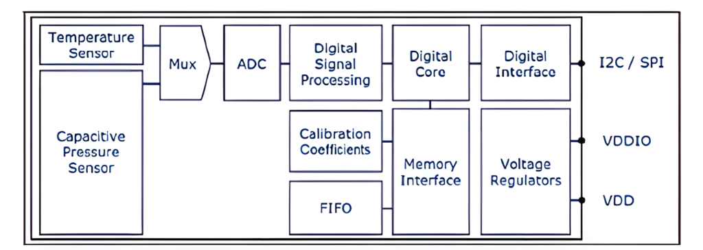 HP303B,特點(diǎn):是一款小型化數(shù)字氣壓傳感器,具有高精度和低電流消耗等特點(diǎn),并且能夠測量壓力和溫度。器件采用密封電容式傳感元件。