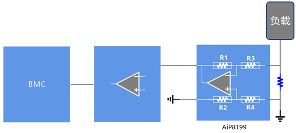 下圖是一種使用AiP8199檢流專用運(yùn)放對(duì)服務(wù)器板上負(fù)載進(jìn)行電流檢測(cè)的應(yīng)用,檢流專用運(yùn)放內(nèi)部集成了輸入及反饋電阻,外圍極簡(jiǎn),僅需要一個(gè)采樣電阻以及電源濾波電容即可實(shí)現(xiàn)固定放大倍數(shù)的小信號(hào)放大,檢流運(yùn)放輸出可通過連接其他放大器進(jìn)行信號(hào)二次放大,或直接輸入到BMC進(jìn)行處理。