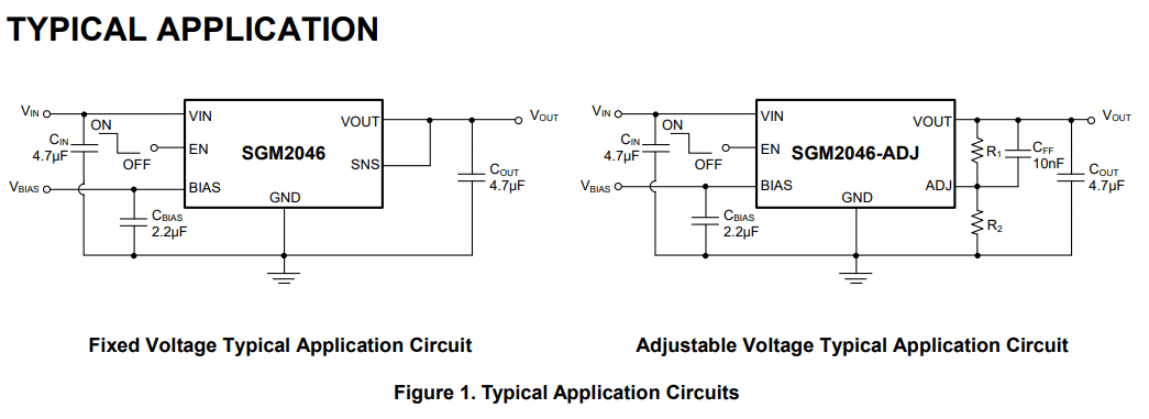 SGM2046是一款采用CMOS工藝設(shè)計的超高電源抑制比(PSRR)、快速瞬態(tài)響應(yīng)、低噪聲和低壓差線性穩(wěn)壓器,能夠提供1.2A的輸出電流。其工作輸入電壓范圍為0.5V至5.5V,偏置電源電壓范圍為2.5V至5.5V,可調(diào)輸出電壓范圍為0.5V至3.3V。該器件的其他特性包括邏輯控制關(guān)斷模式、短路電流限制和熱關(guān)斷保護(hù)。此外,SGM2046還具備自動放電功能,可在關(guān)斷狀態(tài)下快速放電。