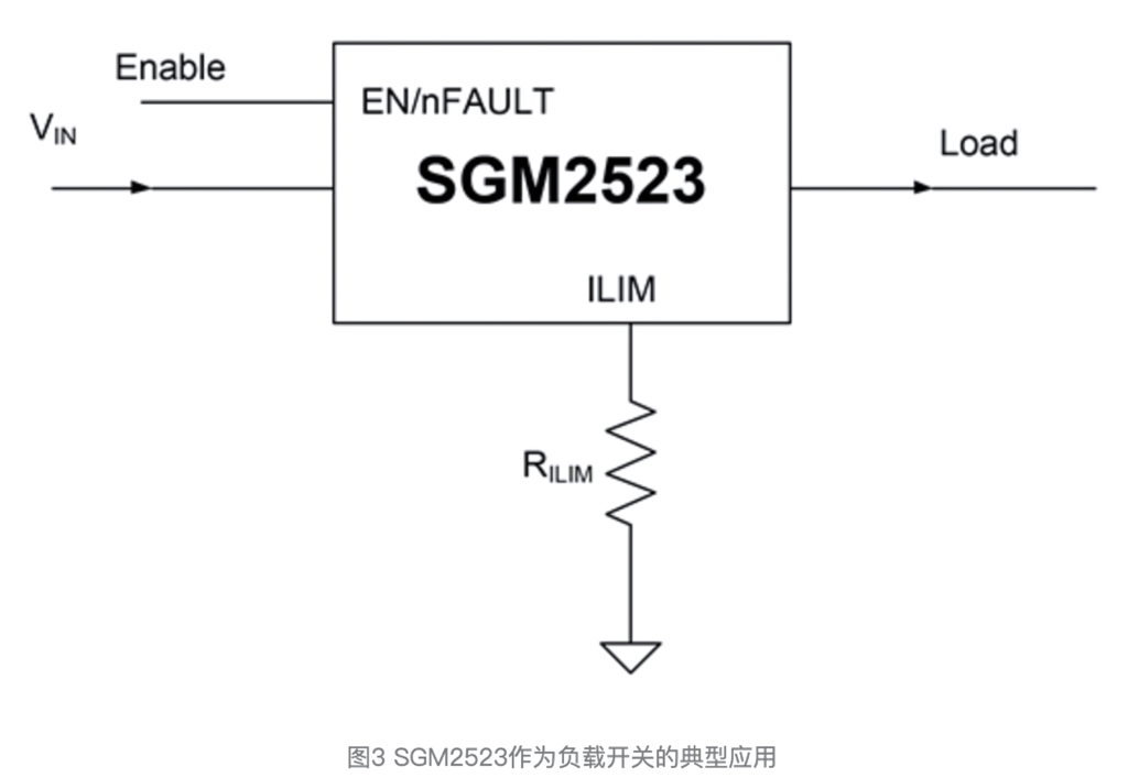 圖3顯示了SGM2523作為負(fù)載開關(guān)的典型應(yīng)用。