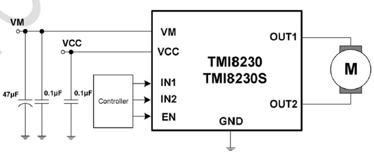 (3)TMI8230/S直流有刷電機(jī)驅(qū)動(dòng),峰值電流2.8A