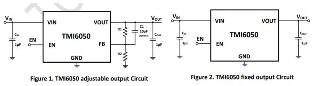 - TMI6030/6050低壓通用LDO,負(fù)載電流分別300/500mA,靜態(tài)電流50uA