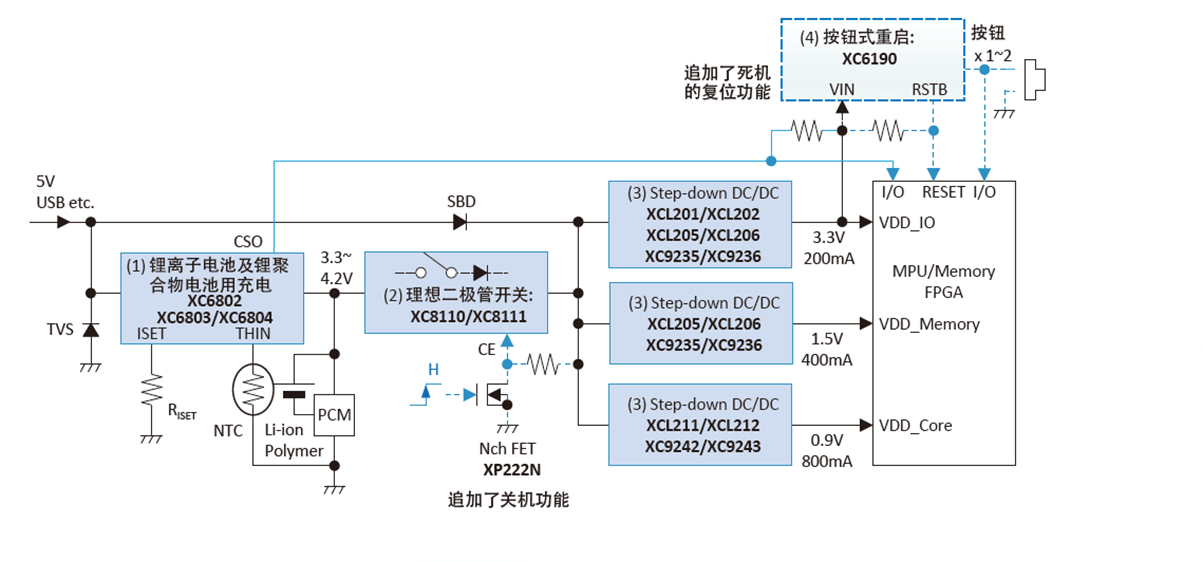 備用電池的連接方法通過使用理想二極管負(fù)載開關(guān)進(jìn)行OR連接,與肖特基二極管SBD相比,大幅度降低VF損失及漏電流